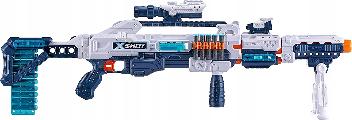 - 12 аксесуарів, включаючи (приціл, ствол, сошку, тримач для дротиків і приклад)