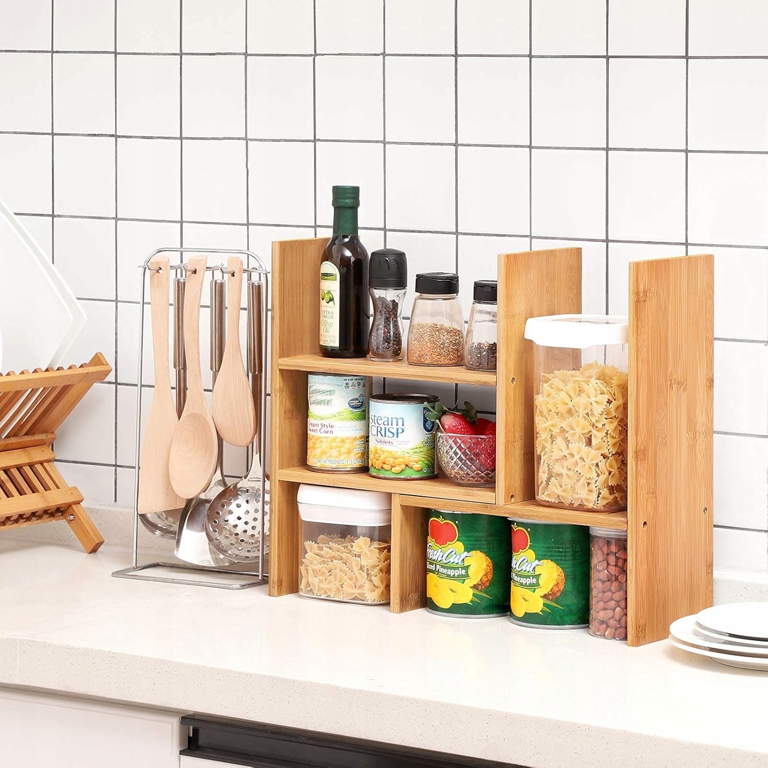 Регульовані полиці, організатор столу, займаючи невелику космічну книжкову шафу для офісу, кухні, ванні кімнати, натуральний бамбук