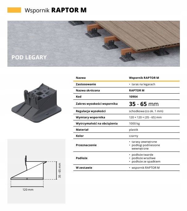 Кронштейни RAPTOR — це рішення, призначене спеціально для вирівнювання балок під терасами та під дерев’яною підлогою на балках. Завдяки цій спеціалізації ми пропонуємо високоякісне системне рішення, яке в той же час має привабливу ціну порівняно з іншими системними рішеннями з ширшою сферою застосування.