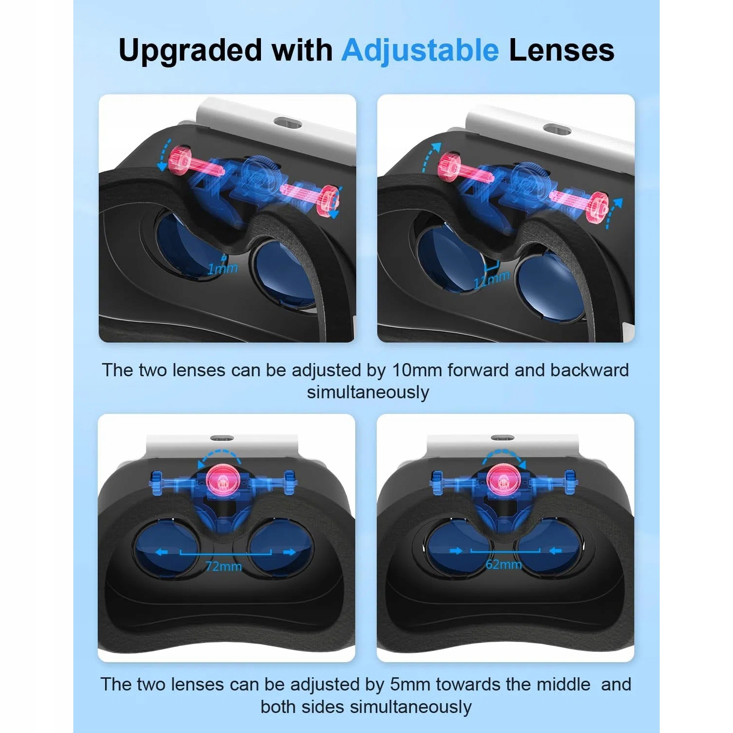 Покращений візуальний досвід: поліпшення якості перегляду завдяки регульованому об'єктиві; Збільшення зображення на 20% для більшої виразності на наборі перемикача VR.