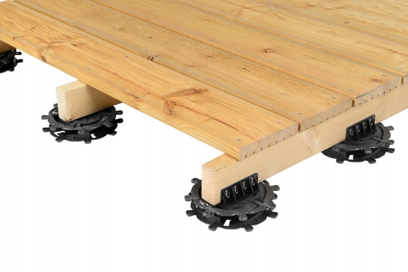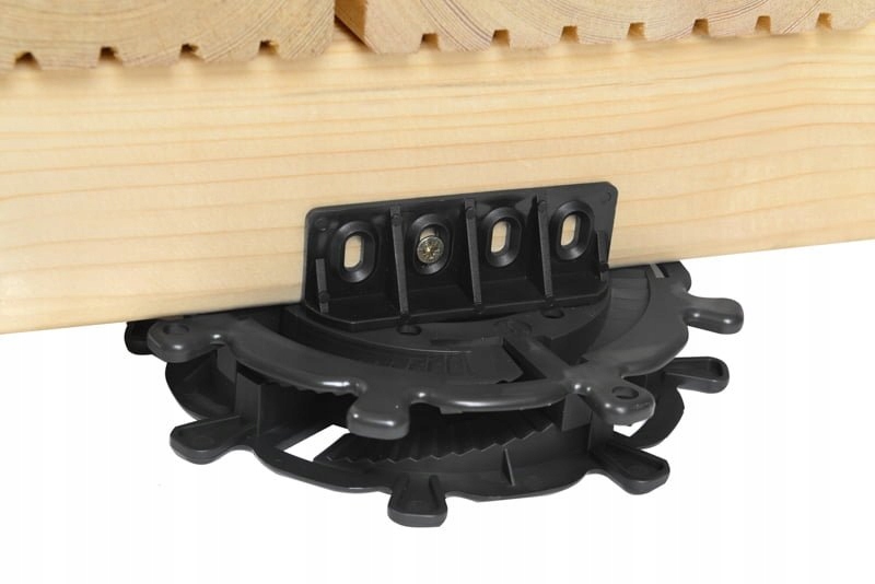 Завдяки новому дизайну цей маленький кронштейн відкриває багато нових можливостей для будівництва терас. Його крокове регулювання працює шляхом обертання двох половинок кронштейна в протилежних напрямках. Це призводить до пропуску наступних зубів, а брекет піднімається або опускається на 1 мм.