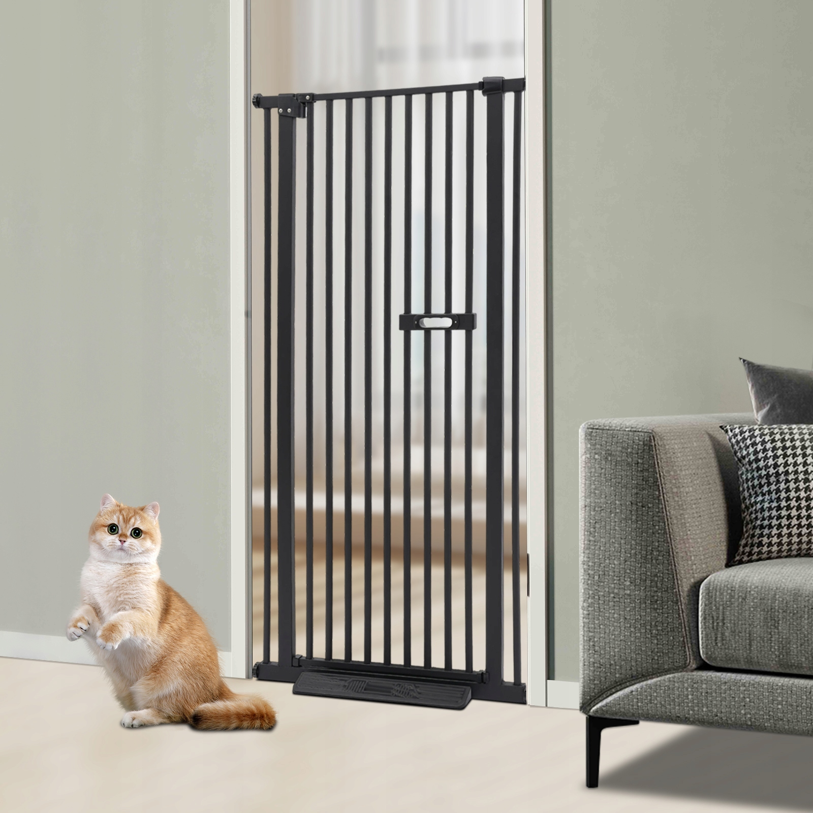 ✅Високий рівень безпеки:він має довжину 59 дюймів, що може ефективно запобігати вистрибуванню домашніх котів і собак. Проміжок 1,38 дюйма занадто вузький, щоб діти та домашні тварини могли пройти через нього або застрягти головою, що підвищує безпеку під час використання. Крім того, верхній і нижній дизайн подвійного замка робить його більш щільним.