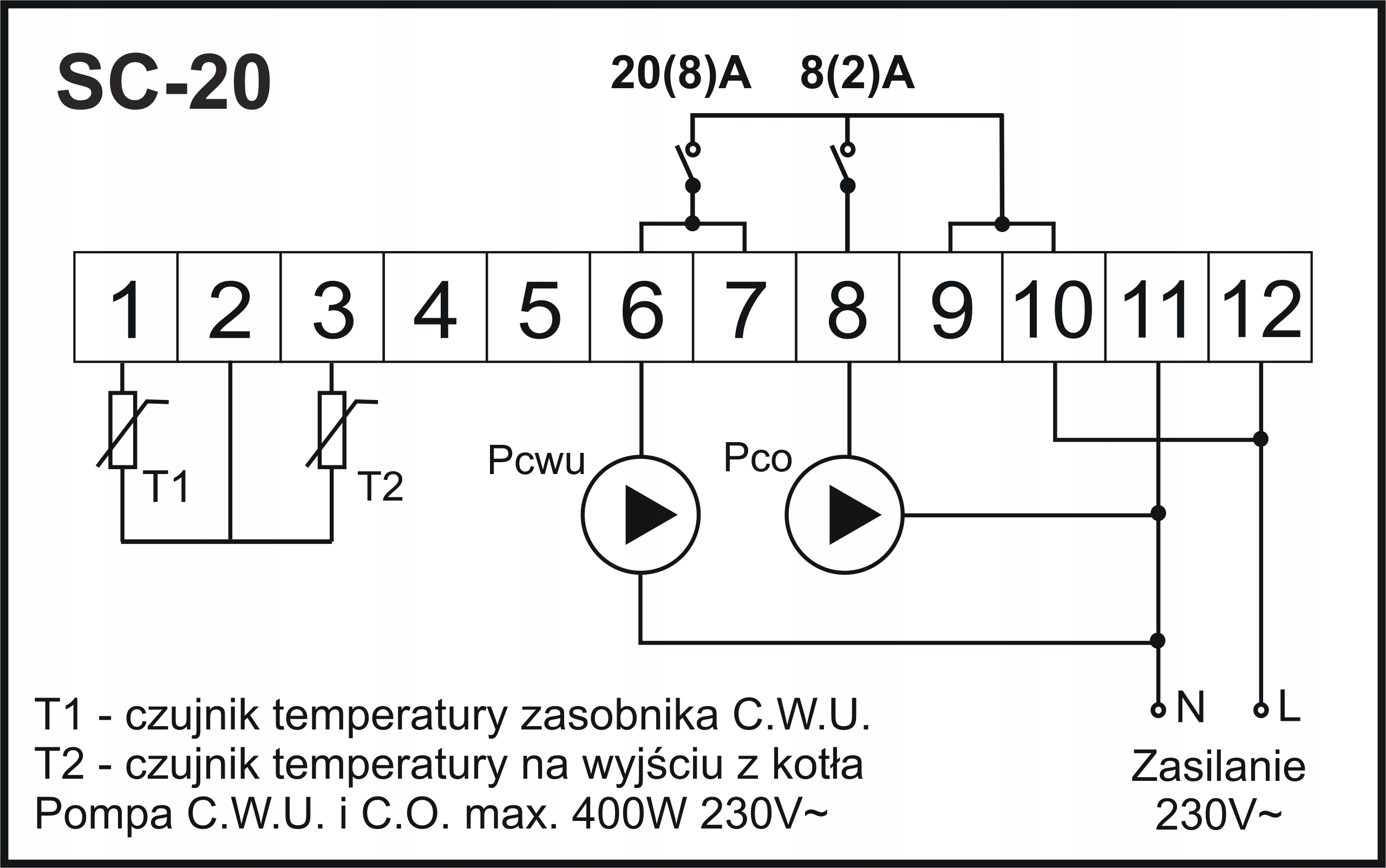 SC-20 призначений для керування системою опалення або охолодження. Залежно від конфігурації регулятор може керувати як простими системами, такими як котел або циркуляційний насос, так і складними системами, наприклад, сонячним колектором або каміном з водяною сорочкою.