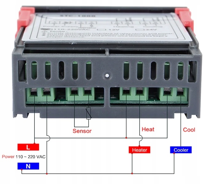 - Два реле, охолодження 10A/220VAC, нагрівання 10A/220VAC;