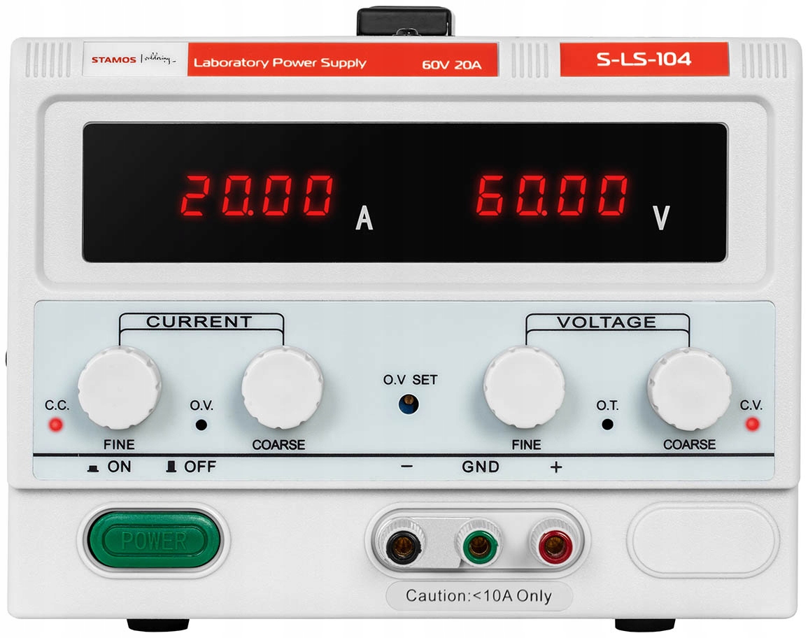 Лабораторне джерело живлення S-LS-104 від Stamos Soldering — це обладнання, призначене для живлення зовнішніх пристроїв постійним струмом. Має можливість індивідуального регулювання струму і напруги. Завдяки функції пам'яті та інтерфейсу використання пристрою дуже ефективне. Джерело живлення було розроблено в основному для професійного використання в промисловому секторі, лабораторіях, телекомунікаціях, майстернях і дослідницьких інститутах. Лінійна технологія забезпечує низьку залишкову пульсацію та низький рівень шуму.