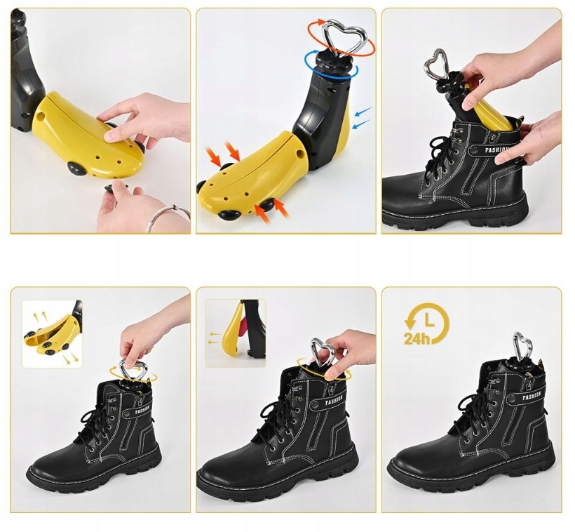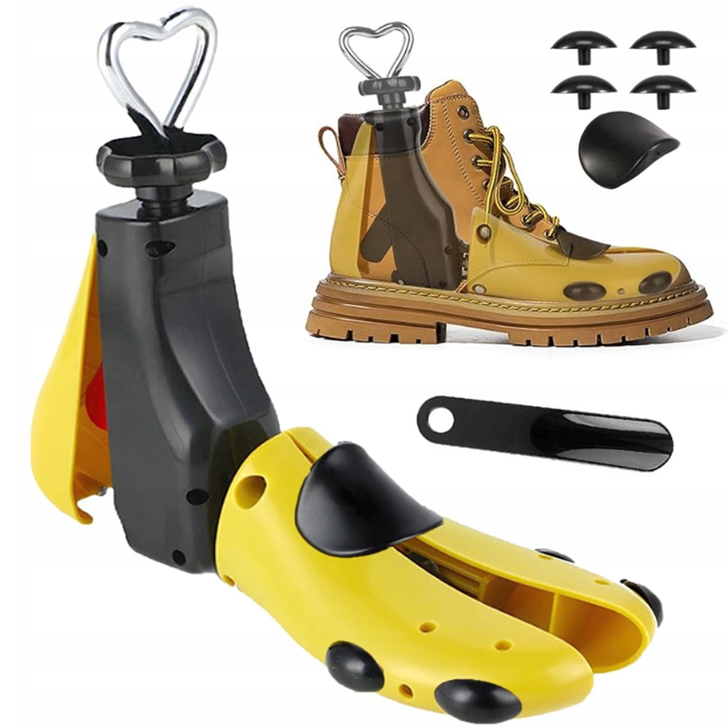 ✅Простий у використанні -вставте вкладиш у черевик і поверніть ручку за годинниковою стрілкою, щоб подовжити черевик і розширити носок. Вставте пробку бурси у відповідний отвір, щоб розширити певну ділянку. Вставте шайбу, щоб відрегулювати верх. Потім залиште накладку у взутті більше доби.