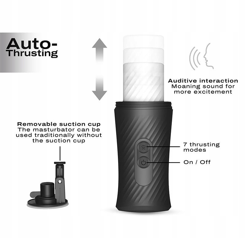 Його робота базується на автоматичному та регулярному русі вгору-вниз , забезпечуючи автентичний досвід минету, дуже близький до реальності. М'який і текстурований вкладиш для мастурбатора має реалістичний вхід. Компоненти іграшки, які легко розбираються, дозволяють легко підтримувати гігієну.