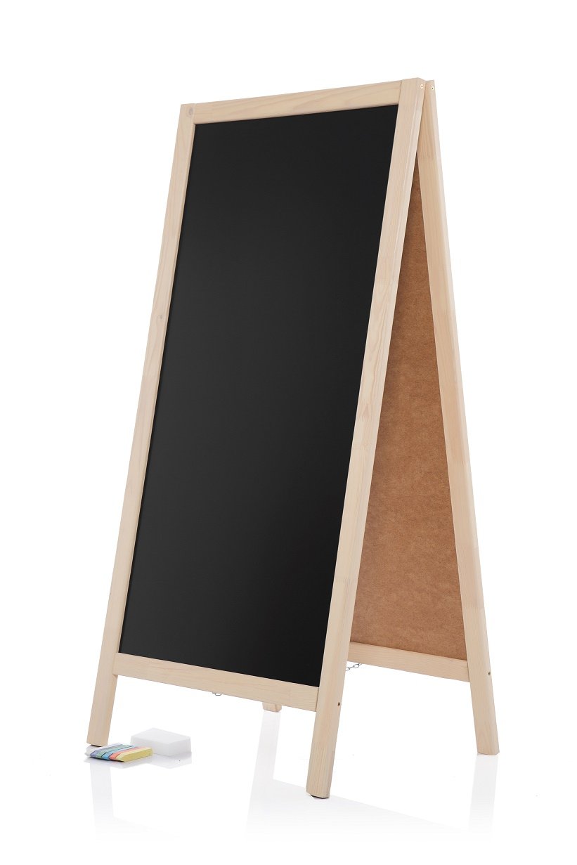 Двосторонній рекламний щит, виготовлений з HDF плити, яка виконує роль крейдяної дошки та дерев'яної рами. Дошка має ланцюжок, який не дозволяє їй розгортатися.