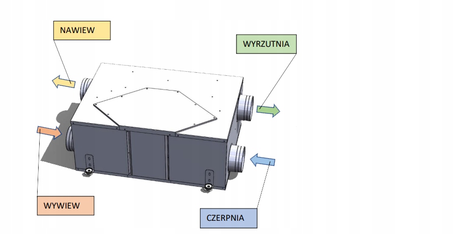 - Діаметр патрубків підключення повітря - Ø100 мм