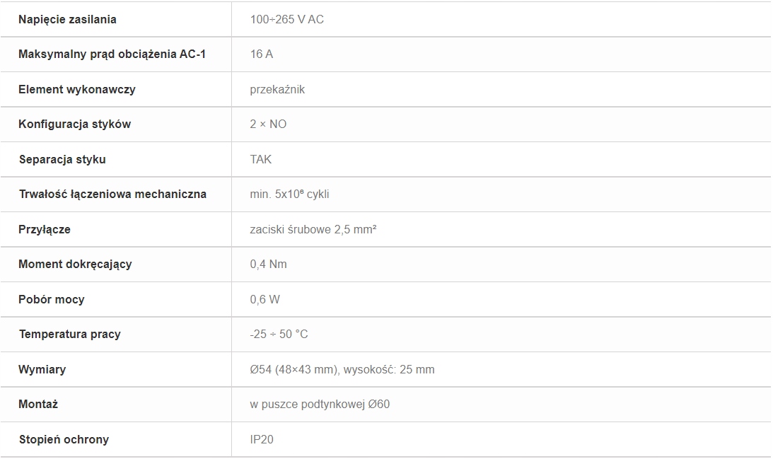 Конфігурація контактів: 2 нормально розімкнуті контакти (NO)