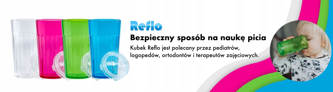 Тренувальна чашка - Reflo Smart Cup ™ - це інноваційний і в той же час простий підхід до навчальних чашок. Версії, виготовлені з безпечного матеріалу Zylar 631, що робить кружку стійкою до ударів світла і падінням з висоти.