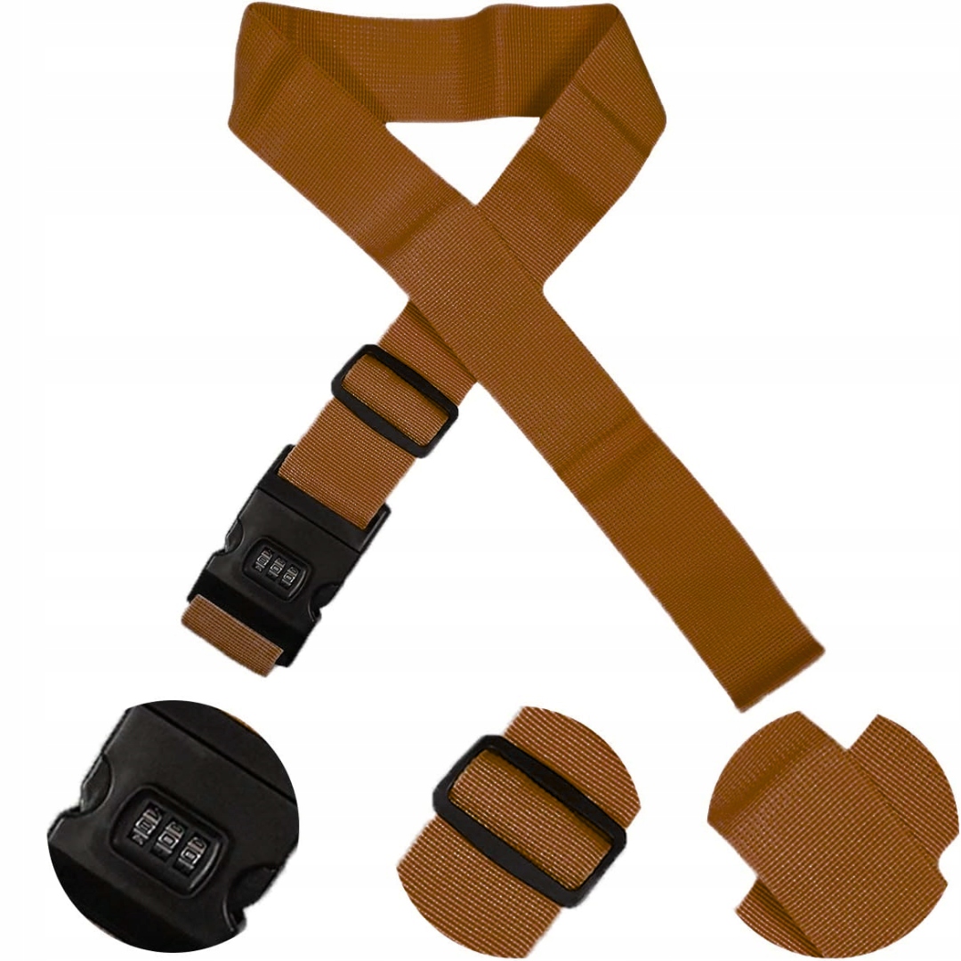 Захистіть свою валізу від відкриття завдяки нашому суцільному ремені, що захищає шифр. Цей коричневий пояс, виготовлений з міцного поліпропілену, не лише захищає замки вашої валізи від пошкоджень, але й допомагає легко розпізнати багаж в аеропорту чи в готелі. "Клацніть" затискач із шифром забезпечує додатковий захист і дозволяє відірватися, коли це необхідно.