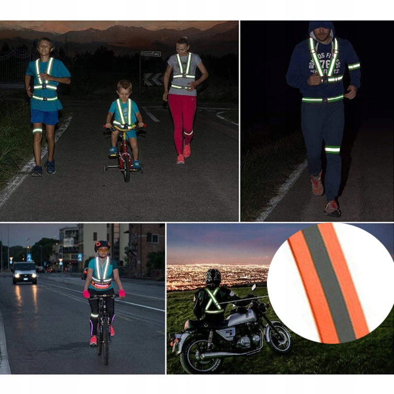 Універсальні світловідбиваючі підтяжки з повним двоступеневим регулюванням довжини. Вони ідеально підходять для їзди на велосипеді, мотоциклі, бігу або ходьби - вони чудово покращують нашу видимість на дорогах! Пам’ятайте, що ваша безпека є пріоритетом, і відсутність світловідбиваючого жилета наражає вас на непотрібний ризик!