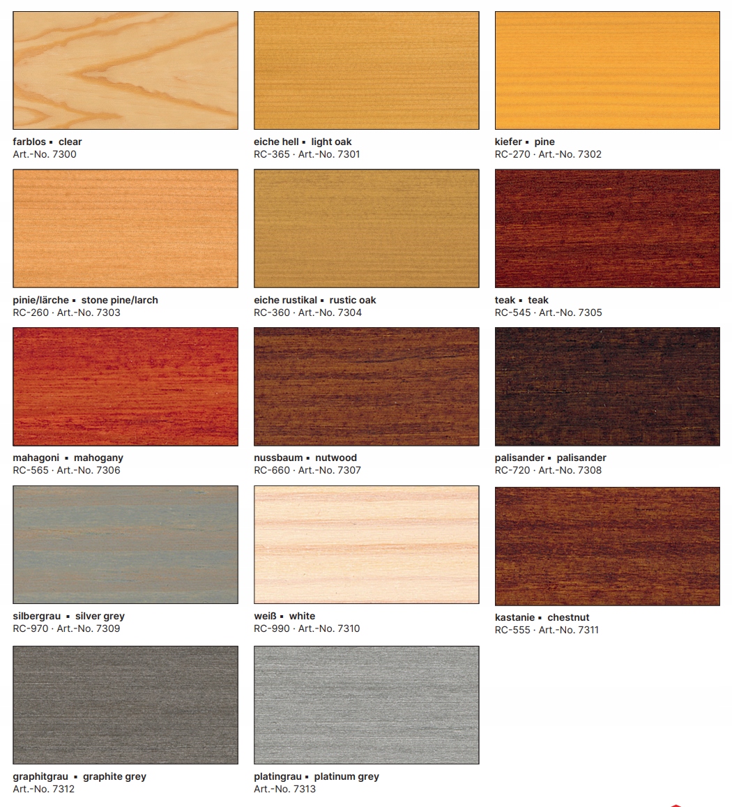 - Protection against atmospheric Фактори (структурний захист деревини та захист вологи, що забезпечуються продуктом) знижує ризик утворення утворення ціанозу та гнилі. 4 150 мл - 200 мл/м², застосовується щонайменше 2 шари