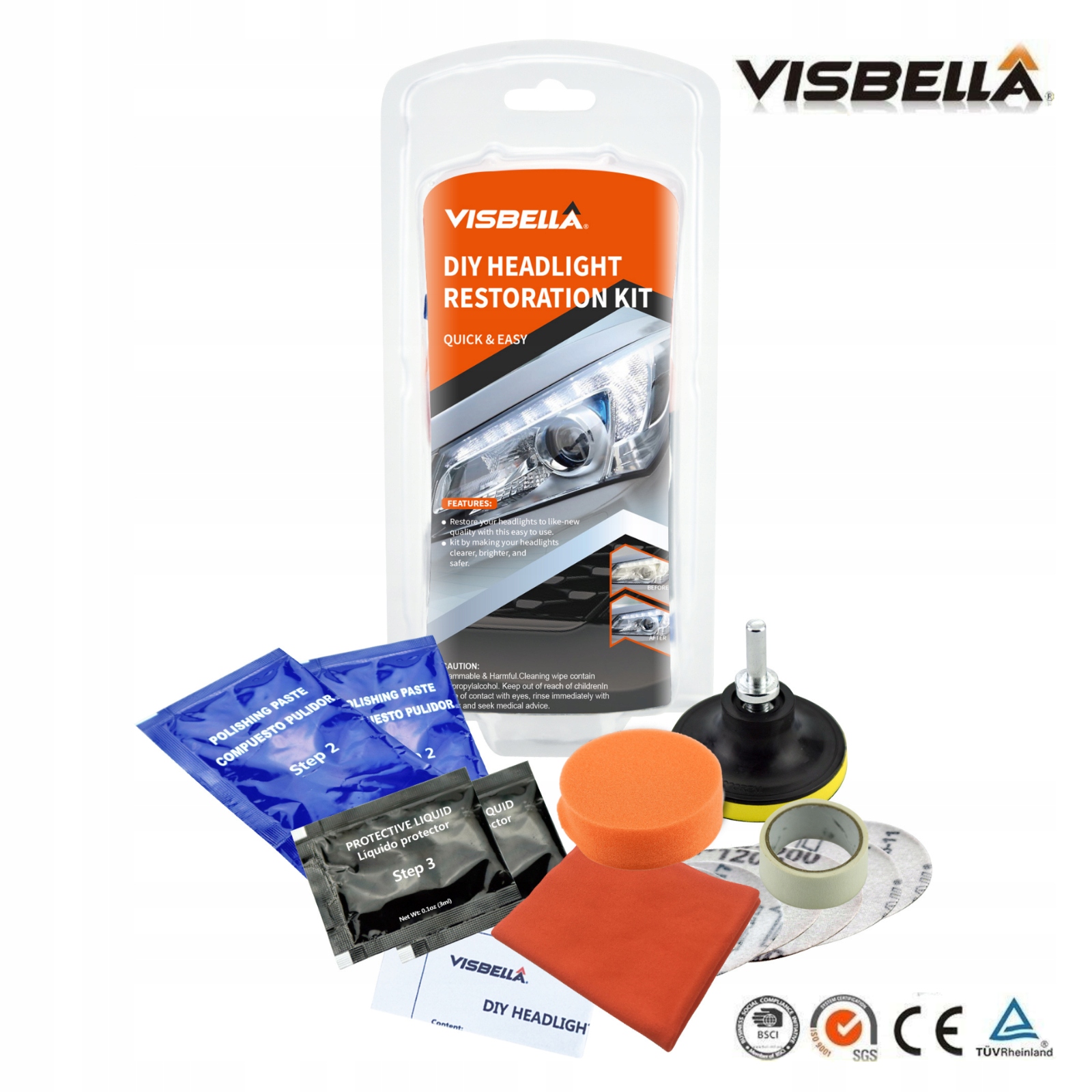4за допомогою набору ви відновите фари вашого автомобіля колишнє сяйво, щоб вони виглядали як нові, а головне, вони дадуть набагато більше світла, що робить водіння більш безпечним і менш стомлюючим для ваших очей!
