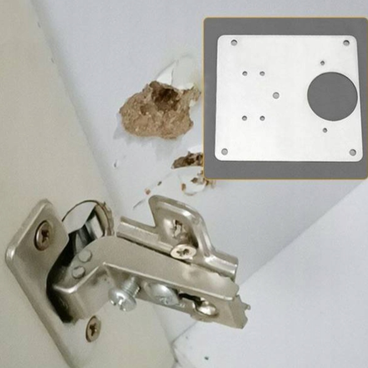 Пластина для ремонту петель допомагає легко відремонтувати пошкоджену петлю без заміни меблів. Пластина є ідеальним рішенням для зламаної меблевої петлі або отвору в ДСП, який неможливо загвинтити назад.