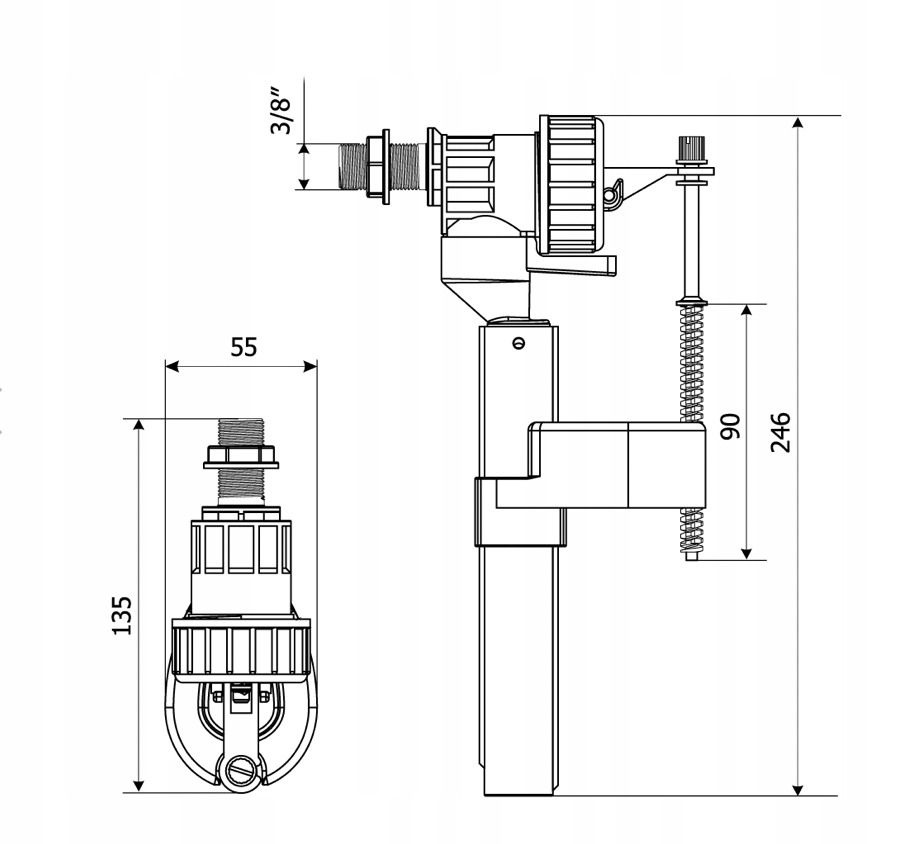 Наповнювальний клапан для рами Carsanit/Link 3/8"