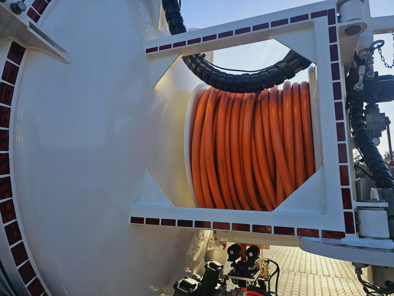 - з високим вмістом. Можливість ручного відхилення за кутом 180˚ була встановлена на Денніці. Гідравлічно обертовий барабан оснащений плавним регулюванням обмотки/швидкості розвитку та пристроєм для ручного укладання шланга тиску на барабан.