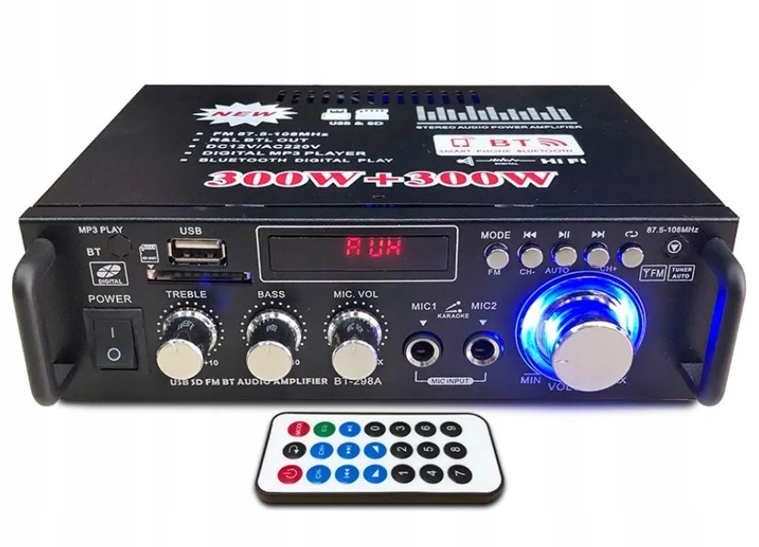 ✅Максимальна пікова потужність 600 Вт і дистанційне керування: 2-канальний стереопідсилювач-ресивер забезпечує 300 Вт x 2 (600 Вт максимальна вихідна музична потужність), забезпечує відмінну якість звуку, чистий і детальний звук. Інфрачервоне дистанційне керування, ідеальний доступ і зв'язок між людиною та підсилювачем. Керування ним просте та зручне, тож він вам сподобається з першої миті.