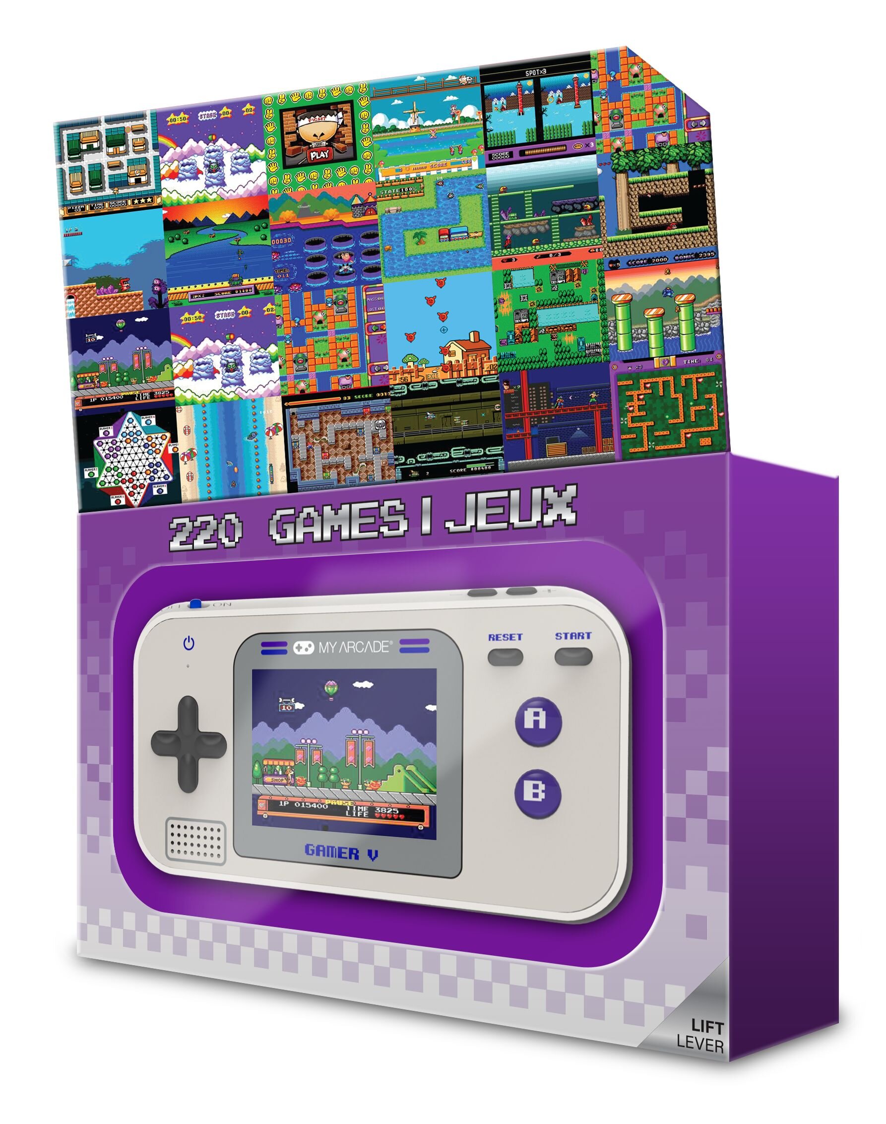Gamer V Classic — ваш супутник у подорожах, як вдома, так і у вільний час. Завдяки 3 батареям AAA ви можете насолоджуватися 220 захоплюючими відеоіграми. Незалежно від того, чи подорожуєте ви, чи вдома ви завжди можете взяти улюблені ігри з собою. Чудова розвага завжди під рукою!