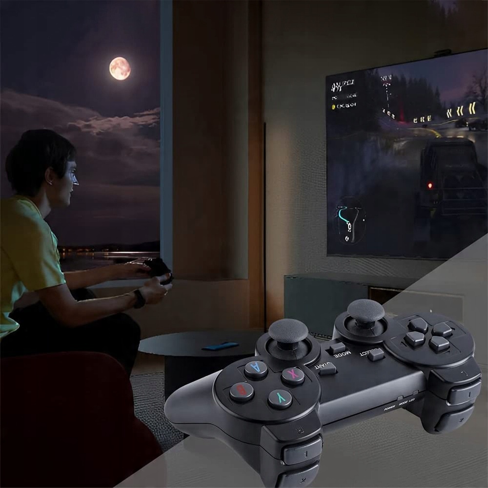 - - Подвійні бездротові контролери, які підтримують сигнал 2,4 ГГц, усуваючи потребу в кабелі та дозволяючи вам керувати своєю консоллю за допомогою двох контролерів.