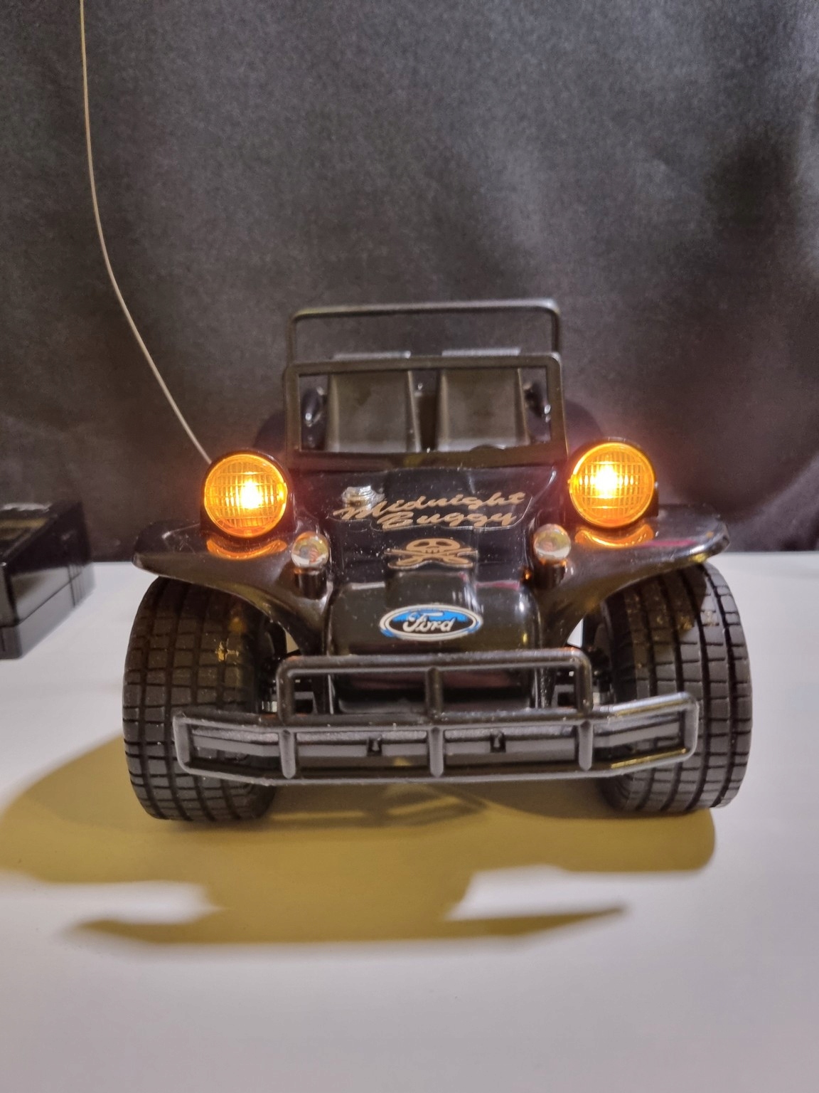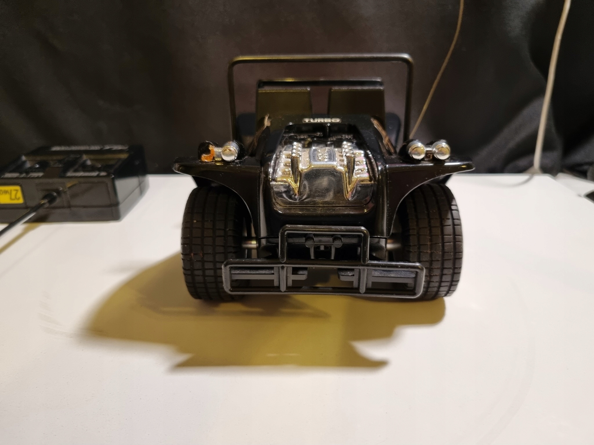 Світло працює, обидва мотори всередині, крутиться, але нажаль щось застрягло задній привід і машина не хоче їхати вперед і назад. Іноді він трохи рухається і застряє - потребує ремонту.