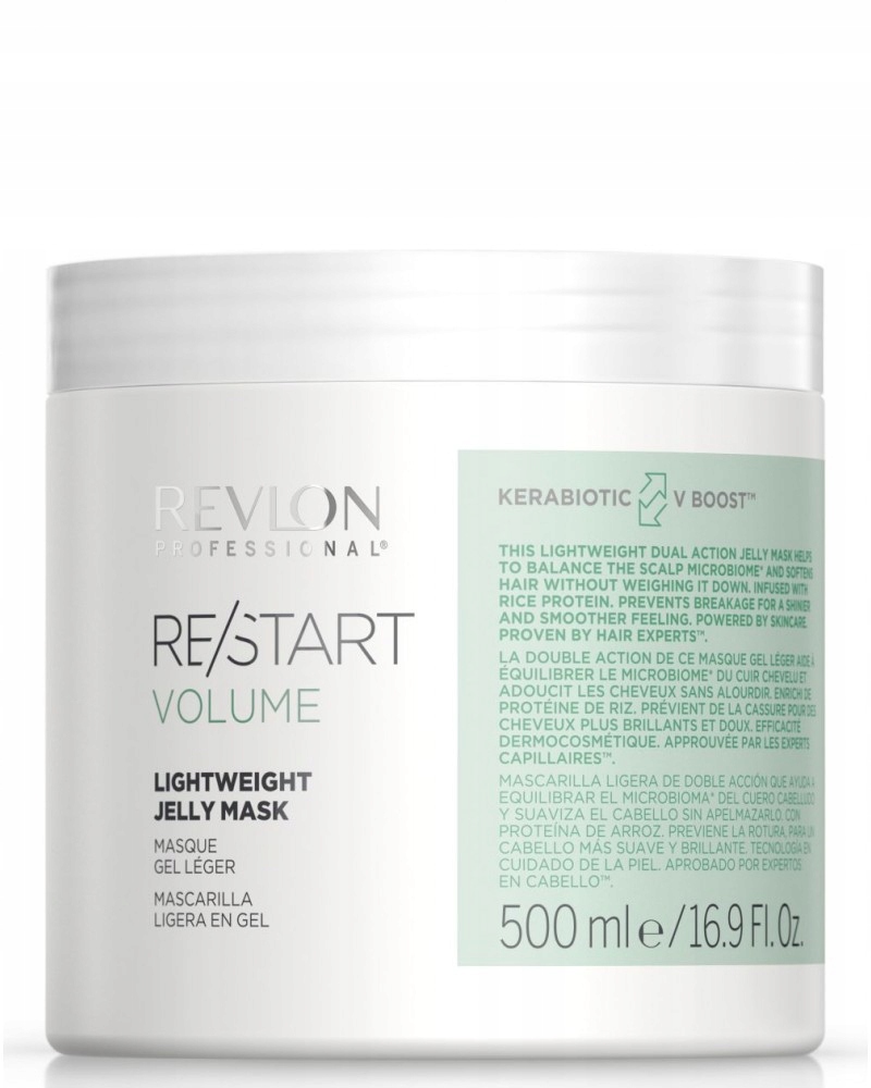 Revlon Re/Start Volume Lightweight Jelly Mask — це легка гелева маска подвійної дії. Допомагає збалансувати мікробіом шкіри голови* та пом’якшує волосся, не обтяжуючи його. Лікування волосся протеїнами рису допомагає зміцнити волосся, не обтяжуючи його. Запобігає ламкості волосся, додає тілесність і об'єм, зволожує, додає блиск і пом'якшує волосся. Волосся стає густішим.