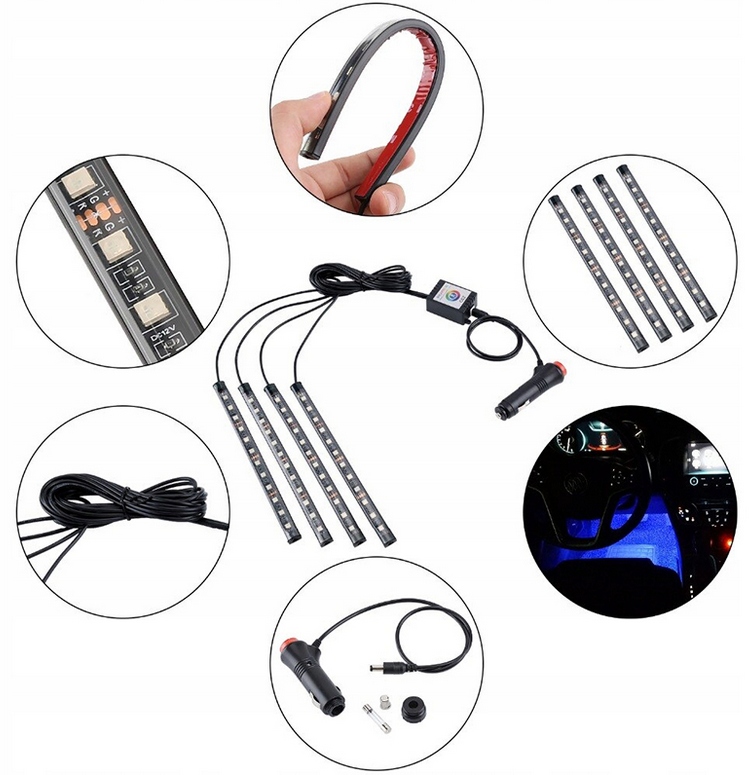 RGB LED ПІДСВІТЛЕННЯ САЛОНУ АВТОМОБІЛЯ ПІДСВІТЛЕННЯ КАБІНИ АВТОМОБІЛЯ 4х СМУЖКА