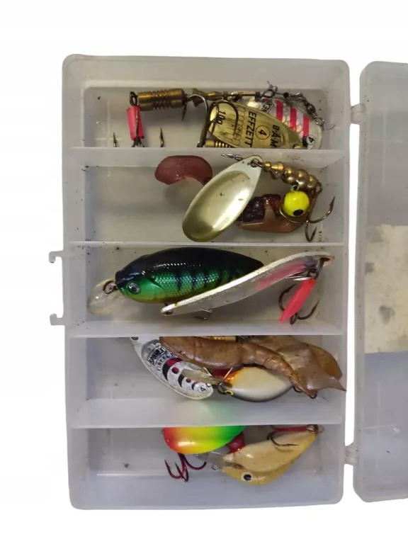 Різні типи простирадла та рибальського приладдя разом із контейнерами, які видно на фотографіях