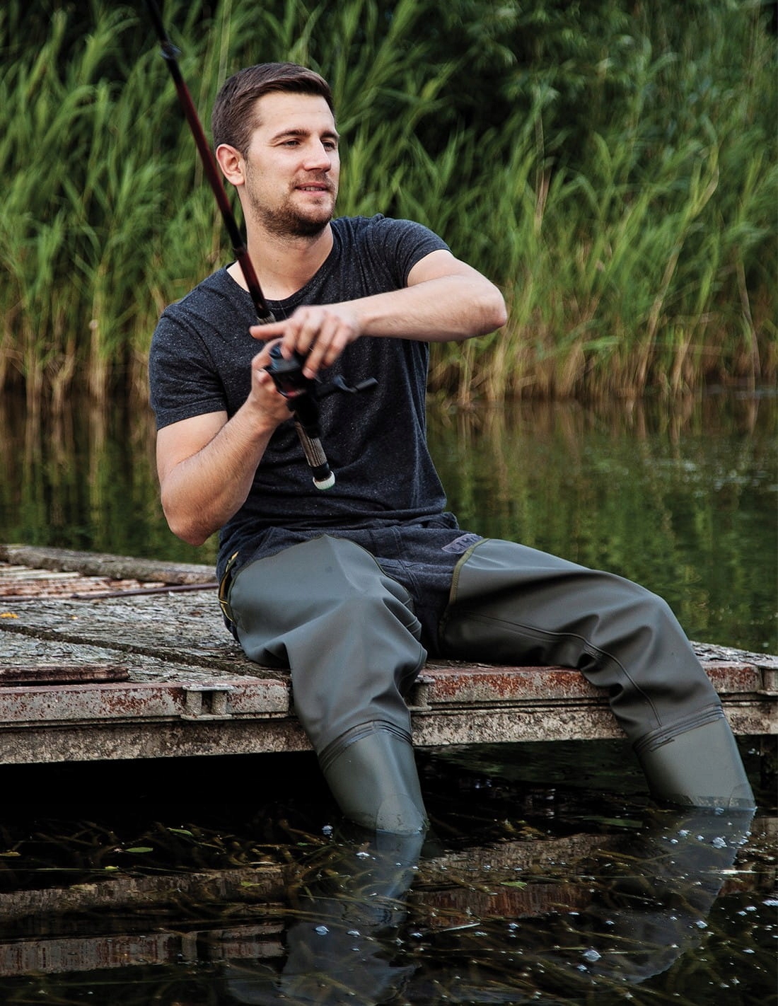сенсаційні, міцні та 100% водонепроникні, для проходження у воді . Взуття з високим риболовлею з постійними свердловинами. Модель стегна з гумовими підтримуючими кріпленнями. Зручне кріплення до пояса штанів. Кабель води дає вам можливість швидко надіти їх і зняти їх.