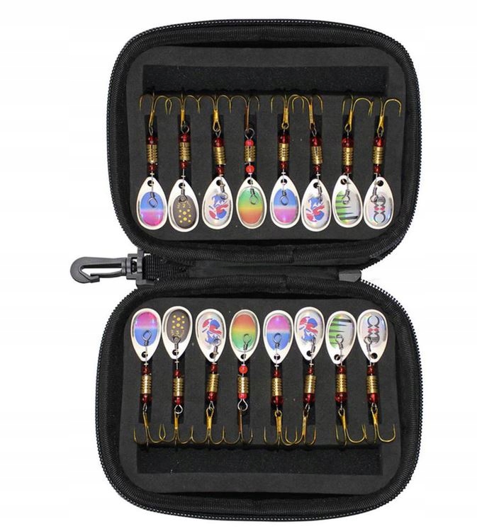 У рибальський набір входить 16 блешень. Блешні виготовлені з високоякісних матеріалів: блешня з нержавіючої сталі ідеальної форми та широкої колірної гами. Високі дієз потрійний. Високоякісне лезо забезпечує безперервний спалах і вібрацію.