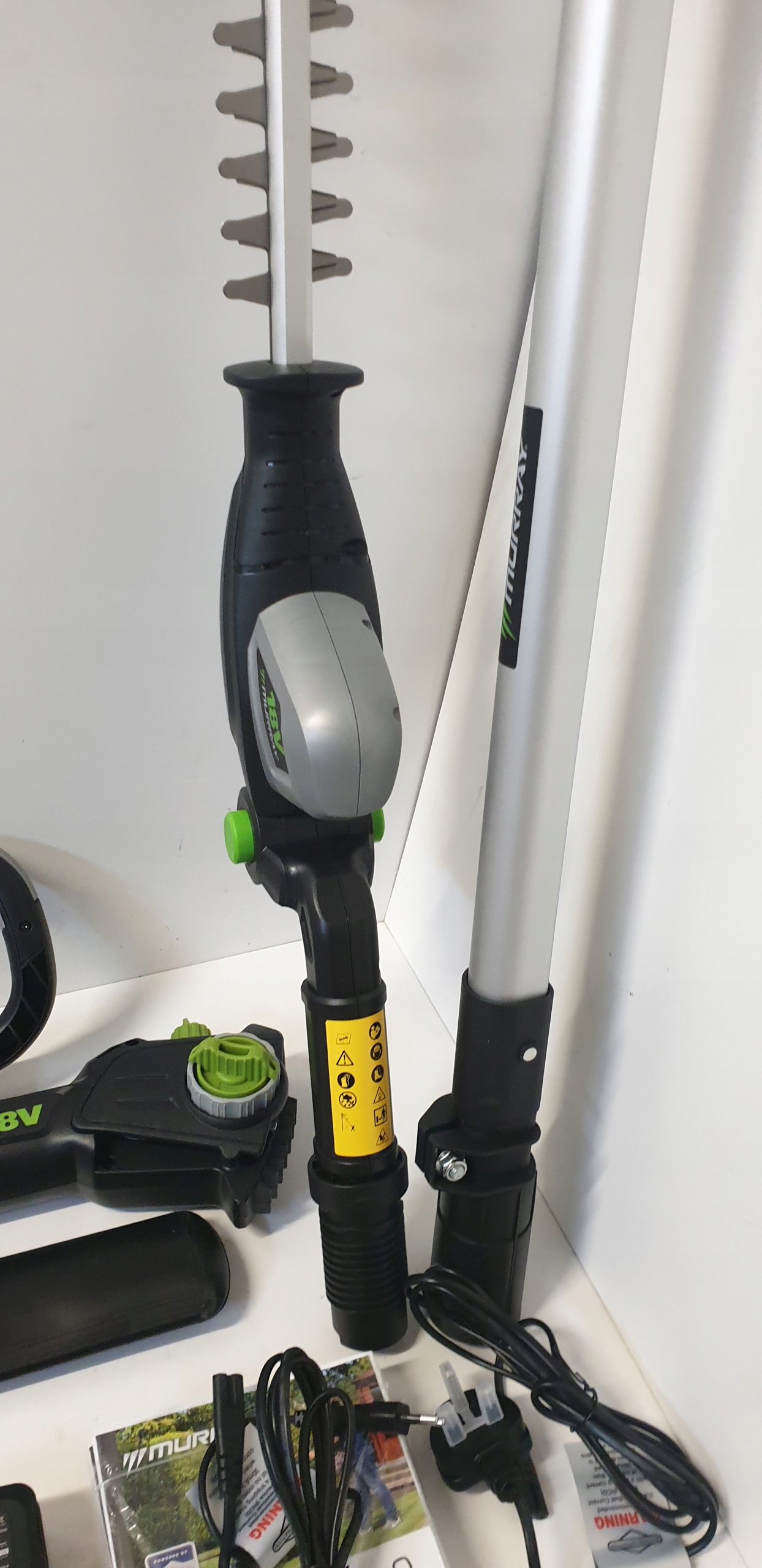 - Ріжучу головку, що обертається, можна легко відрегулювати в 7 різних положеннях, щоб відповідати більшості живоплотів
