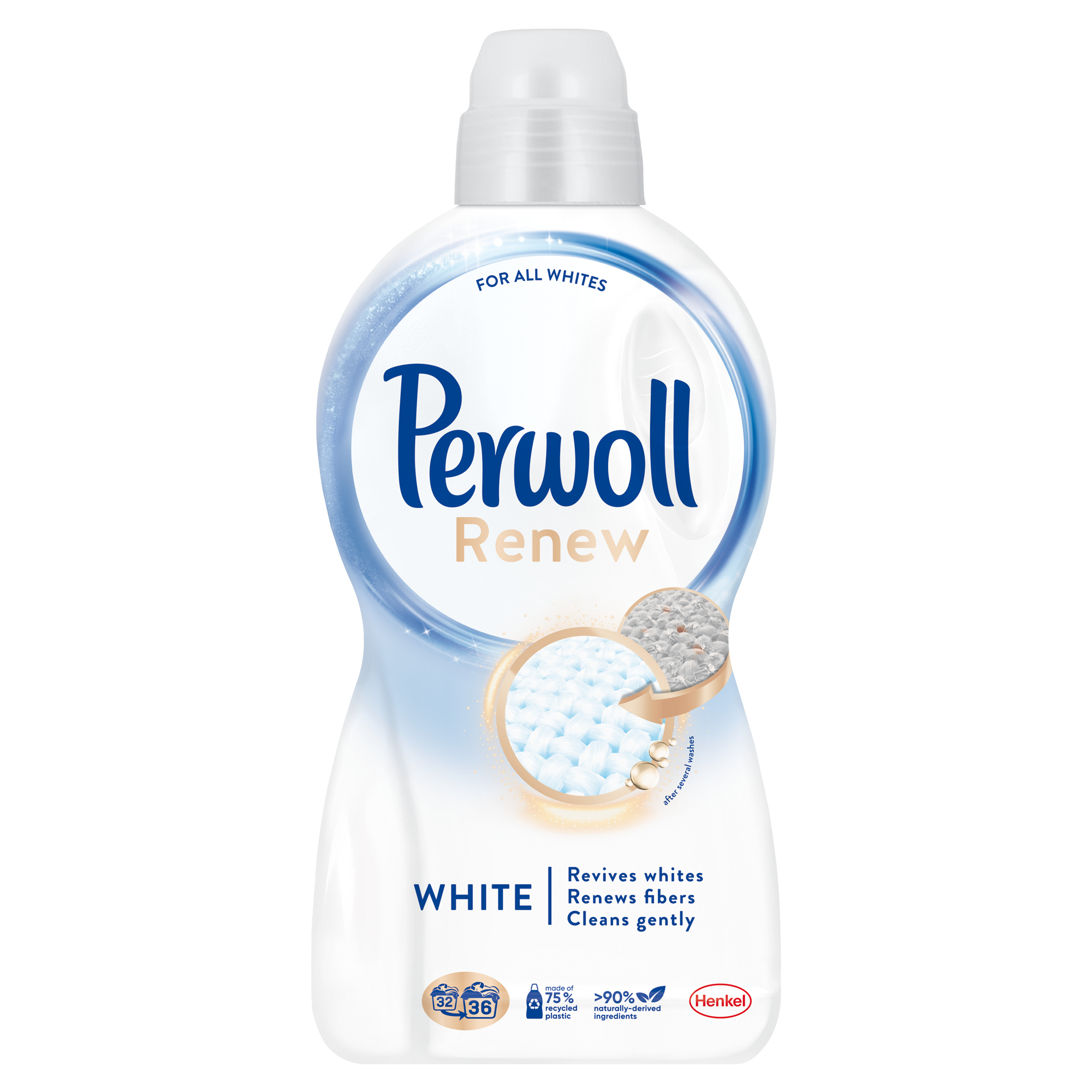 - Миюча рідина Perwoll Renew White, яка захищає, відновлює та відновлює навіть вицвілі кольори, завдяки чому ваш одяг буде виглядати як новий після кожного прання.