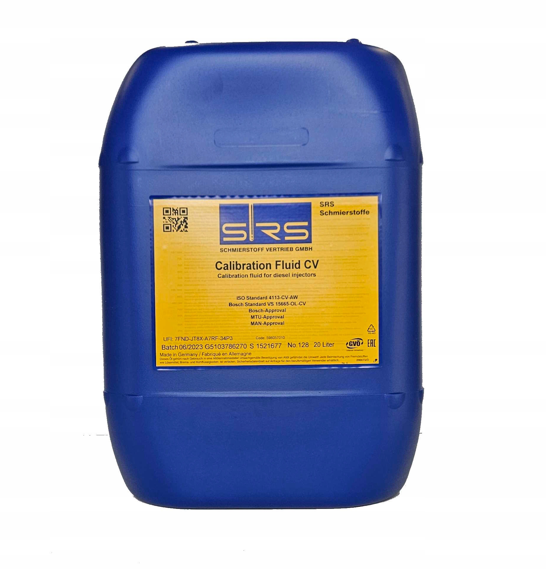 SRS Calibration Fluid CV — тестова олива з низькою в’язкістю для калібрування інжекторних насосів із дуже жорстким допуском в’язкості. Відрізняється чудовим захистом від зносу та корозії та низькою схильністю до спінювання.