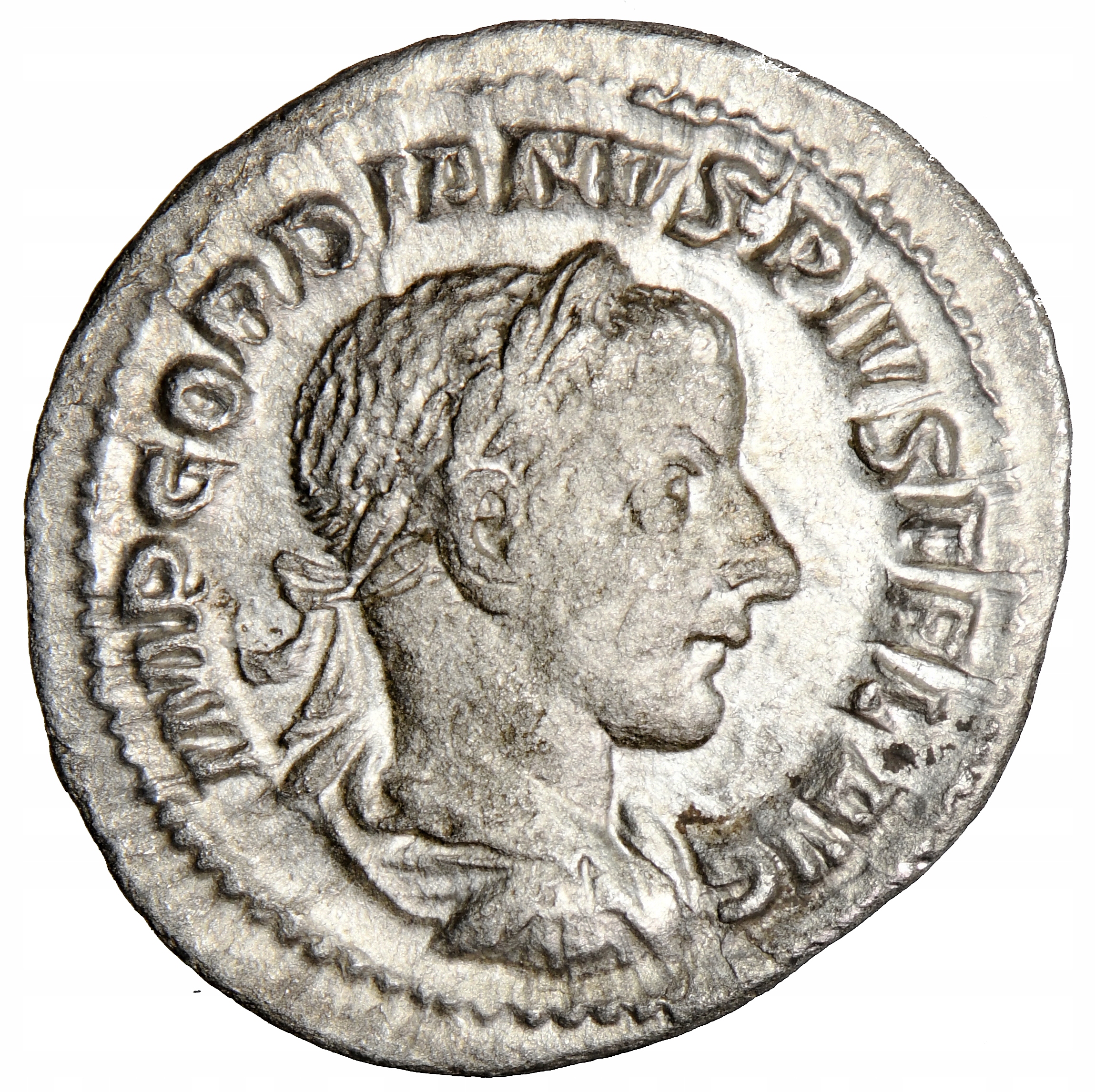 Av. IMP GORDIANVS PIVS FEL AVG, бюст імператора в лавровому вінку вправо.