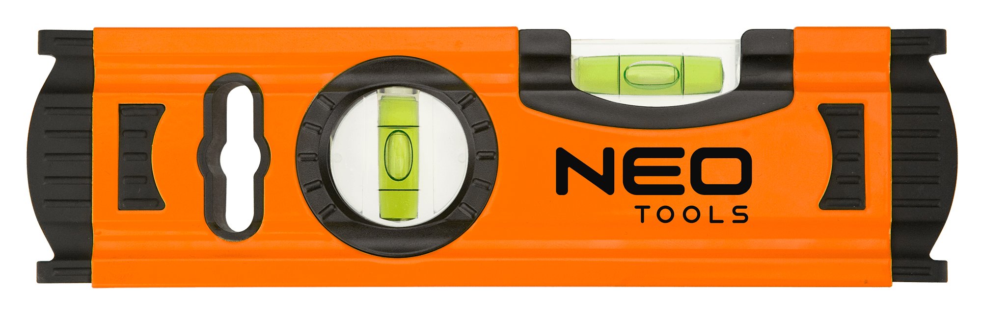 Алюмінієвий рівень NEO з точністю вимірювання 0,5 мм/м. Корпус з міцного алюмінієвого сплаву. Має 2 флакони. Товщина стінок профілю 1,3 мм. Набір якісних ключів, головок та інших інструментів, необхідних у кожній майстерні. Інструмент NEO виготовляється на основі новітніх технологій і сучасних матеріалів.