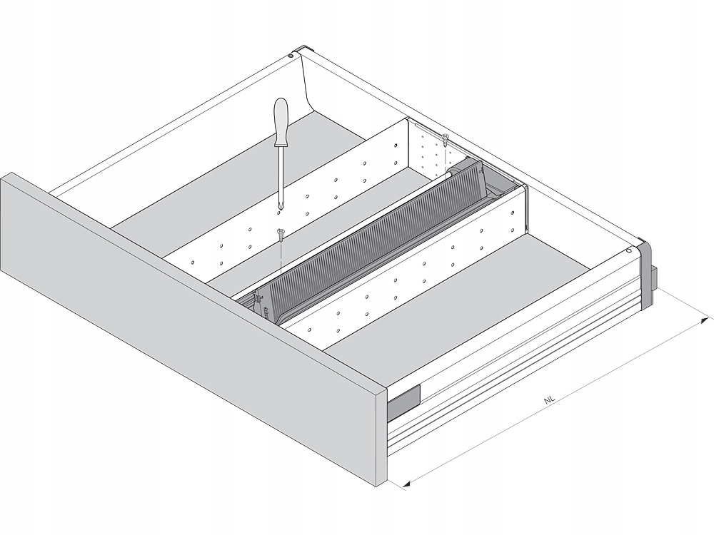 Різак харчової фольги — інноваційний продукт із серії Orga Line для шухляд Tandembox. Усі вироби цієї серії створені для оптимізації простору ящиків, а також для скорочення та полегшення роботи користувачів. Фрезу можна використовувати як окремий виріб або стаціонарно встановити в ящику, прикріпивши його до дна ящика. Куттер - це простий у використанні та безпечний продукт, який дозволяє відрізати рівні шматки фольги одним рухом. У набір входить різак і фольга.