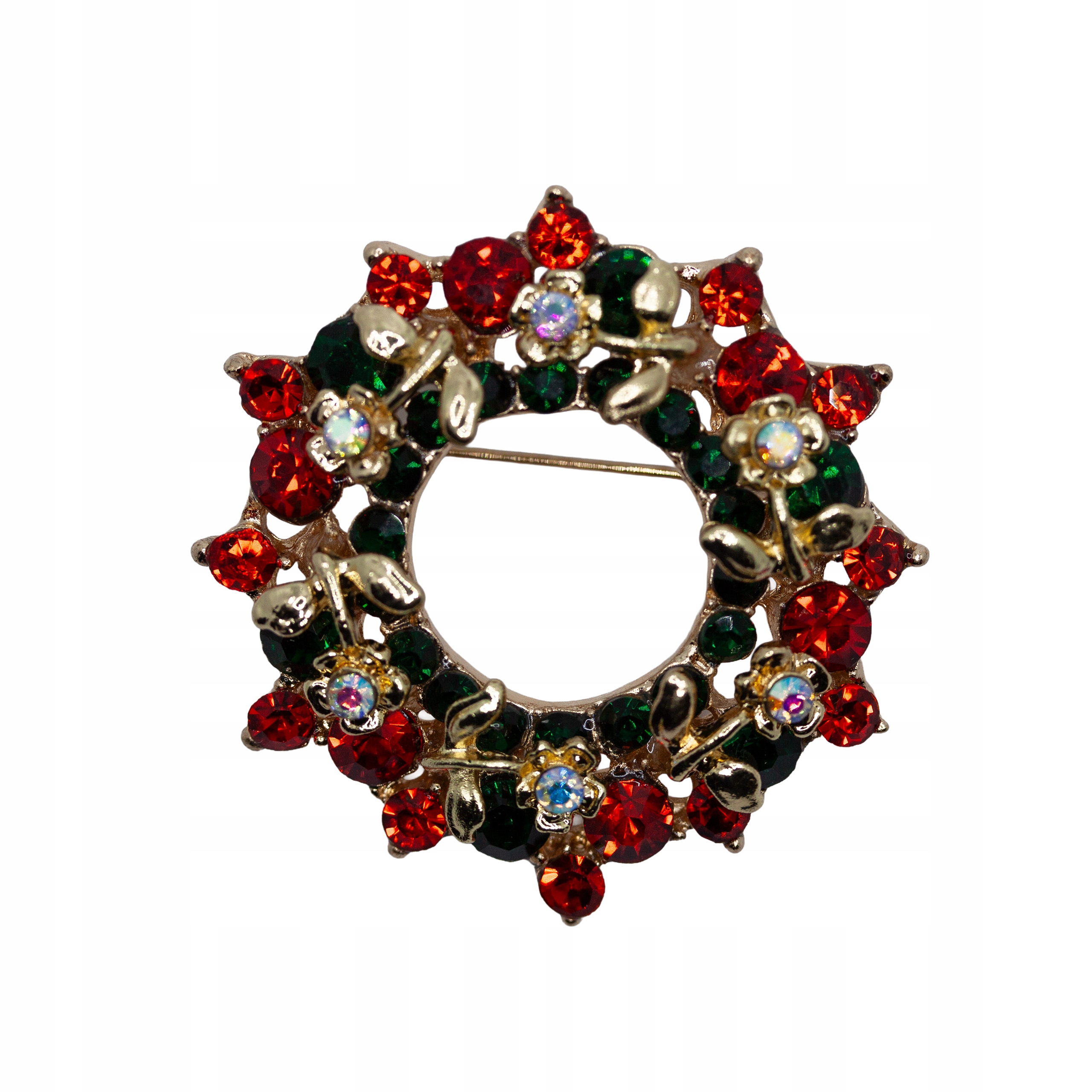 ЗНАЧОК БРОШІ ДЛЯ ОДЯГУ РІЗДВЯНИЙ ЗОЛОТИЙ ВІНОК З КВІТАМИ ТА ЦИРКОНІЯМИ