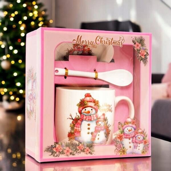 Різдвяна кухоль Ecarla в коробці з блюдцею та чайною ложкою KB18WZ3 400мл