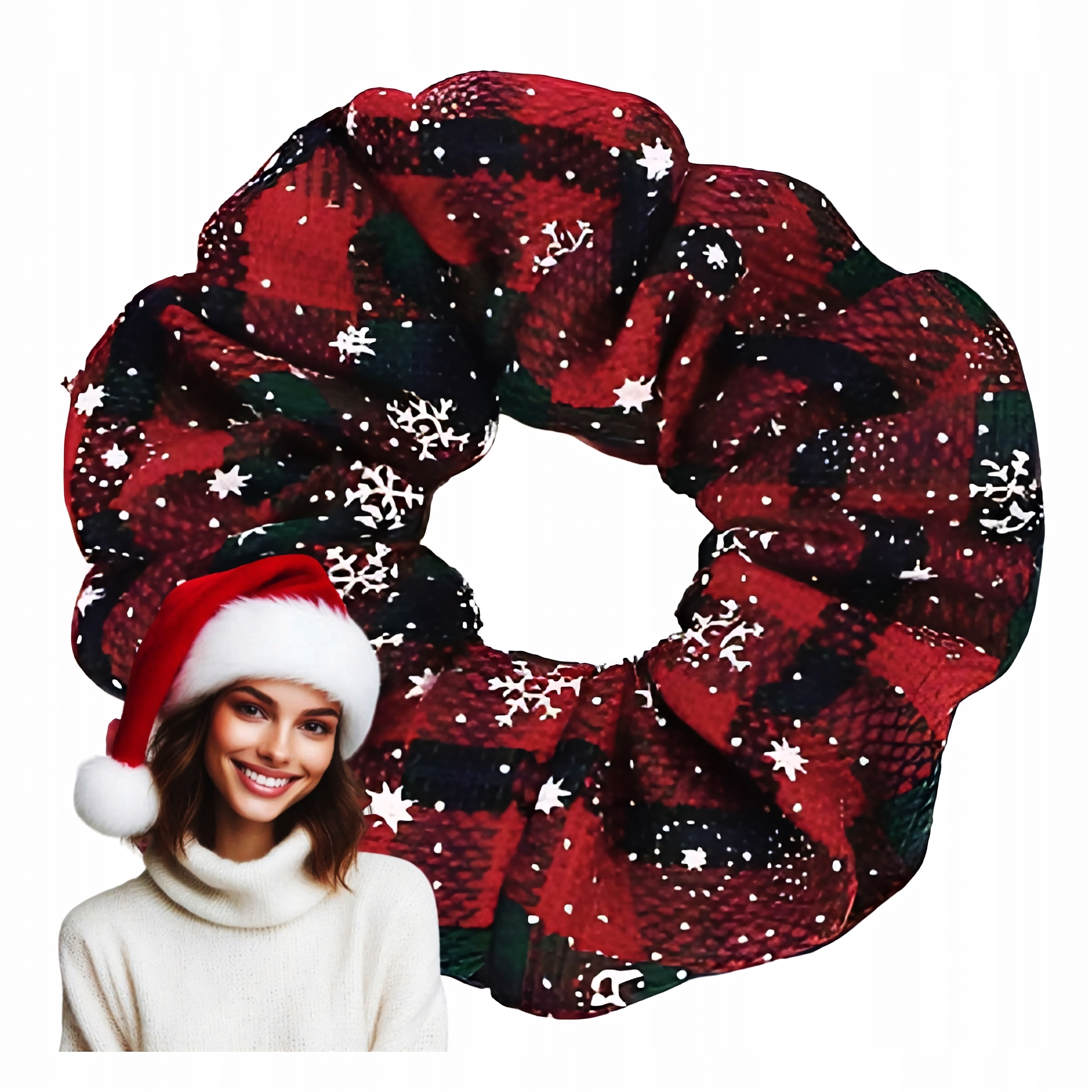 РІЗДВЯНА гумка для волосся, червона, картата, РІЗДВОВА махрова тканина, Санта-Клаус, МОДНО