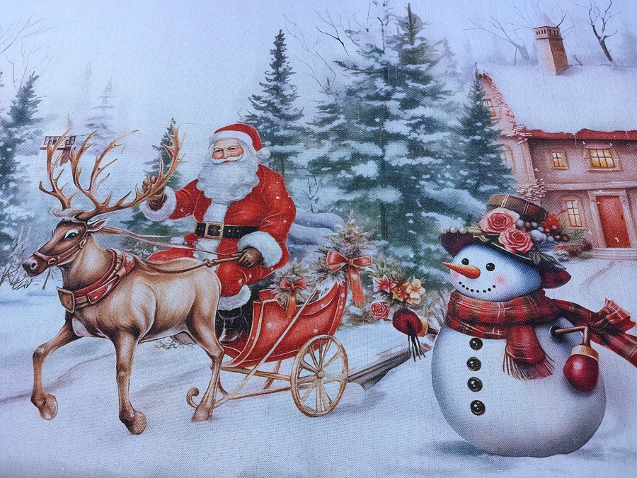 РІЗДВЯНА СКАТЕРТИНА БІЛА 110Х160 РІЗДВЯНИЙ ПРЯМЯСТІЙКИЙ САНТА ОЛЕНЬ