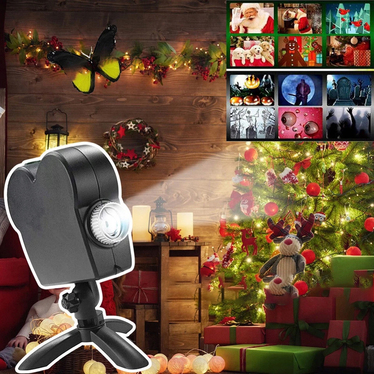 Хеллоуїн, Різдво, різдвяний віконний проектор, німе кіно, світлова лампа, світлодіодна лазерна проекційна лампа, віконний проектор із шаблоном Хеллоуїна