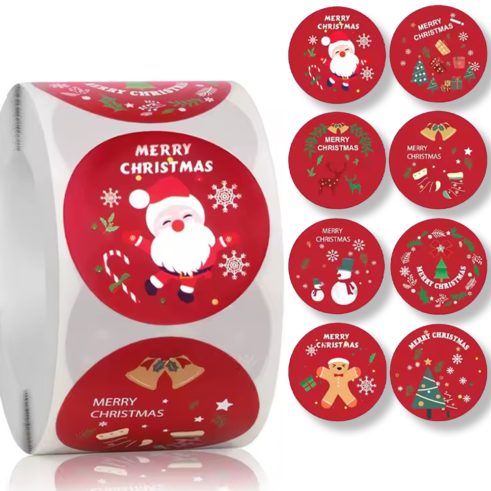 Різдвяні круглі декоративні наклейки діаметром 2,5 см, розміщені на практичному рулоні. Вони містять 8 різних дизайнів: у тому числі: Санта-Клаус, ялинка, пряниковий чоловічок, олені, сніжинки та класичні різдвяні мотиви. Завдяки насиченому червоному кольору та чітким деталям вони чудово виглядають на подарунках і упаковці.