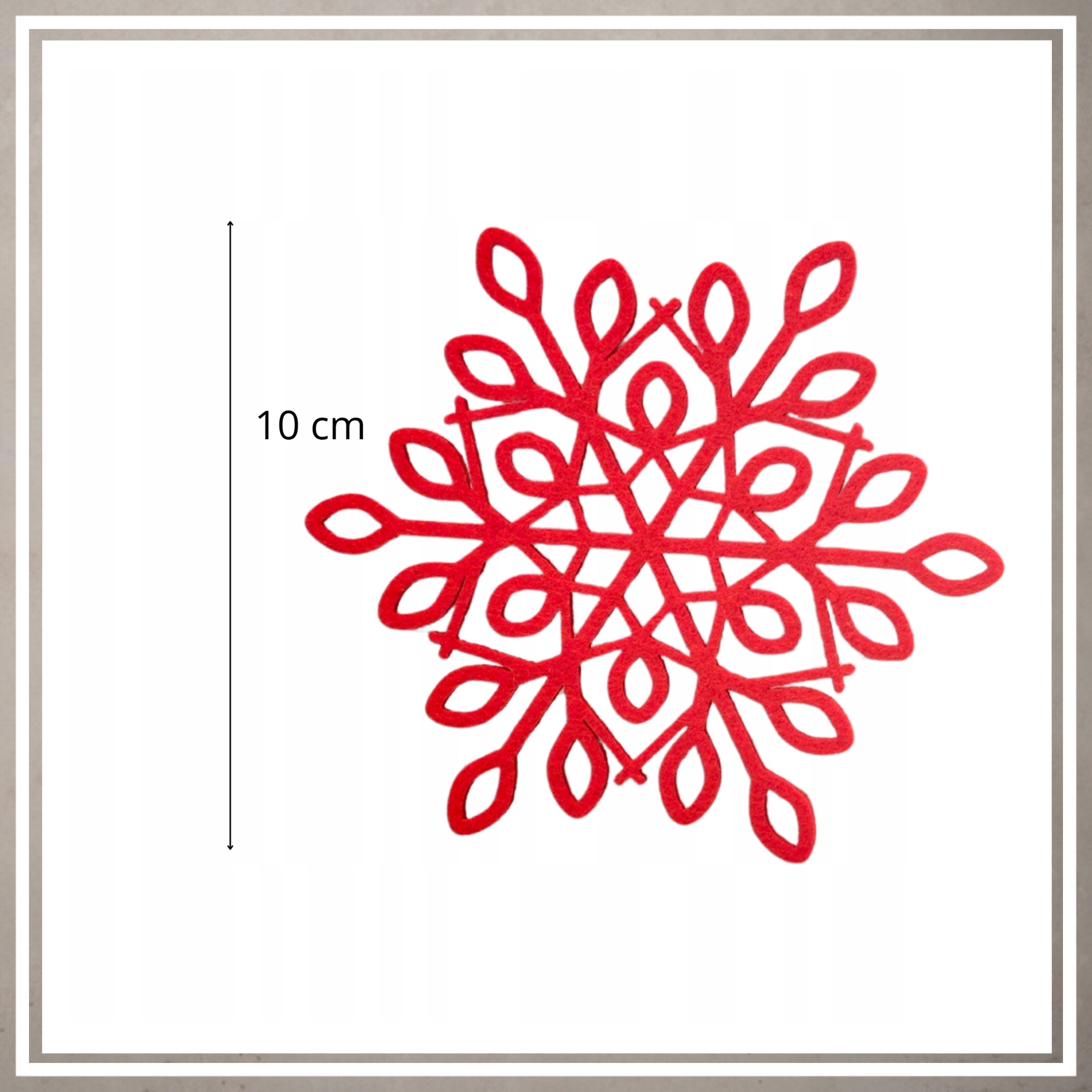 ❇️Наші різдвяні серветки – це не лише практичний аксесуар, але, перш за все, чарівна прикраса, яка одразу вас зацікавить Різдвяний настрій для вашого дому. Виготовлені з високоякісного фетру товщиною 3 мм, ці червоні зірки діаметром 10 см стануть ідеальним акцентом на вашому столі під час сімейних зустрічей і < б >святкові обіди. Ви також можете використовувати їх як оригінальні ялинкові прикраси, створивши унікальну композицію. Завдяки своїй універсальності ці серветки дозволять вам дати волю своїй уяві та створити унікальні прикраси в усьому домі, а не лише на столі.
