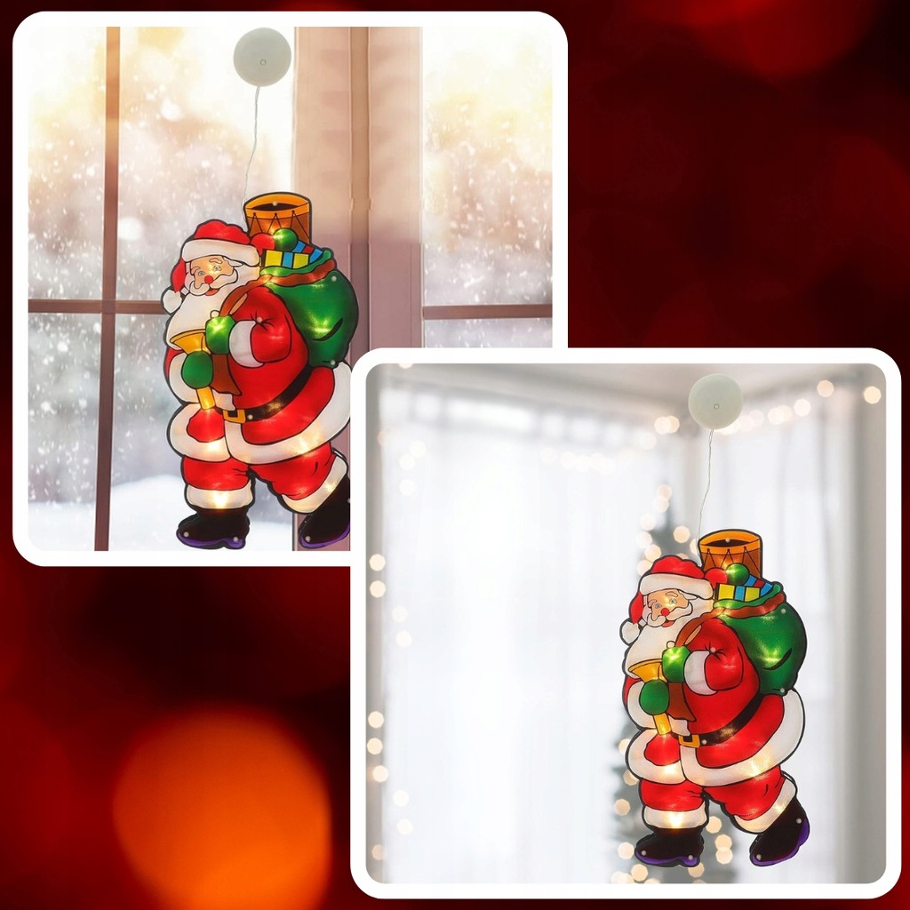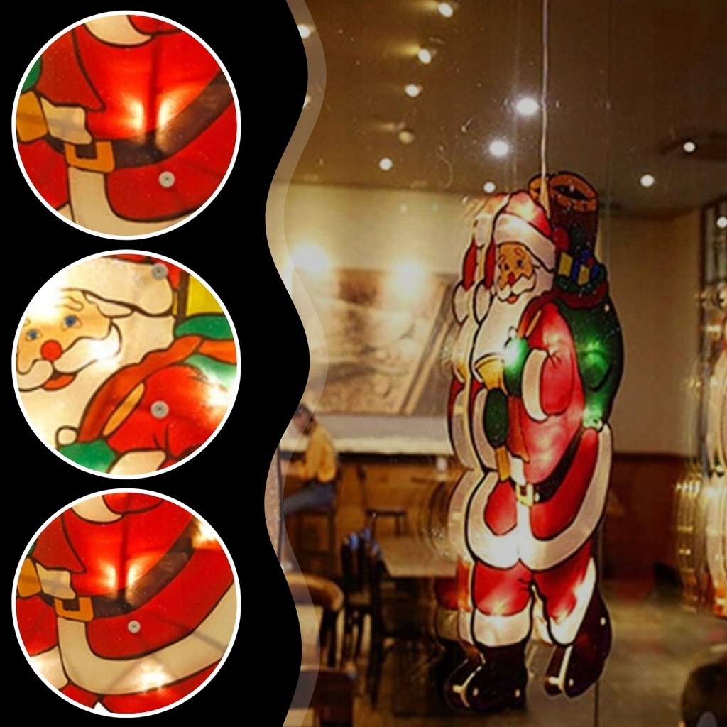 РІЗДВЯНІ СВІТЛОДІОДНІ ПРИКРАСИ САНТА ДЕКОРАЦІЯ ВІКНА РІЗДВЯНІ СВІТЛІ НА БАТАРЕЇ