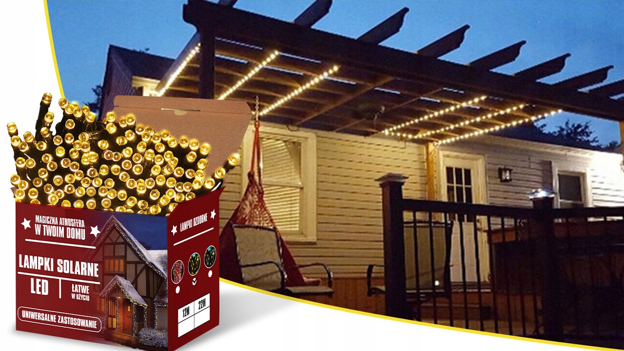 РІЗДВЯНІ ВОГНІ ВІДКРИТИЙ СОНЯЧНИЙ ТЕПЛИЙ БІЛИЙ ВОГНІ 200 LED 22M