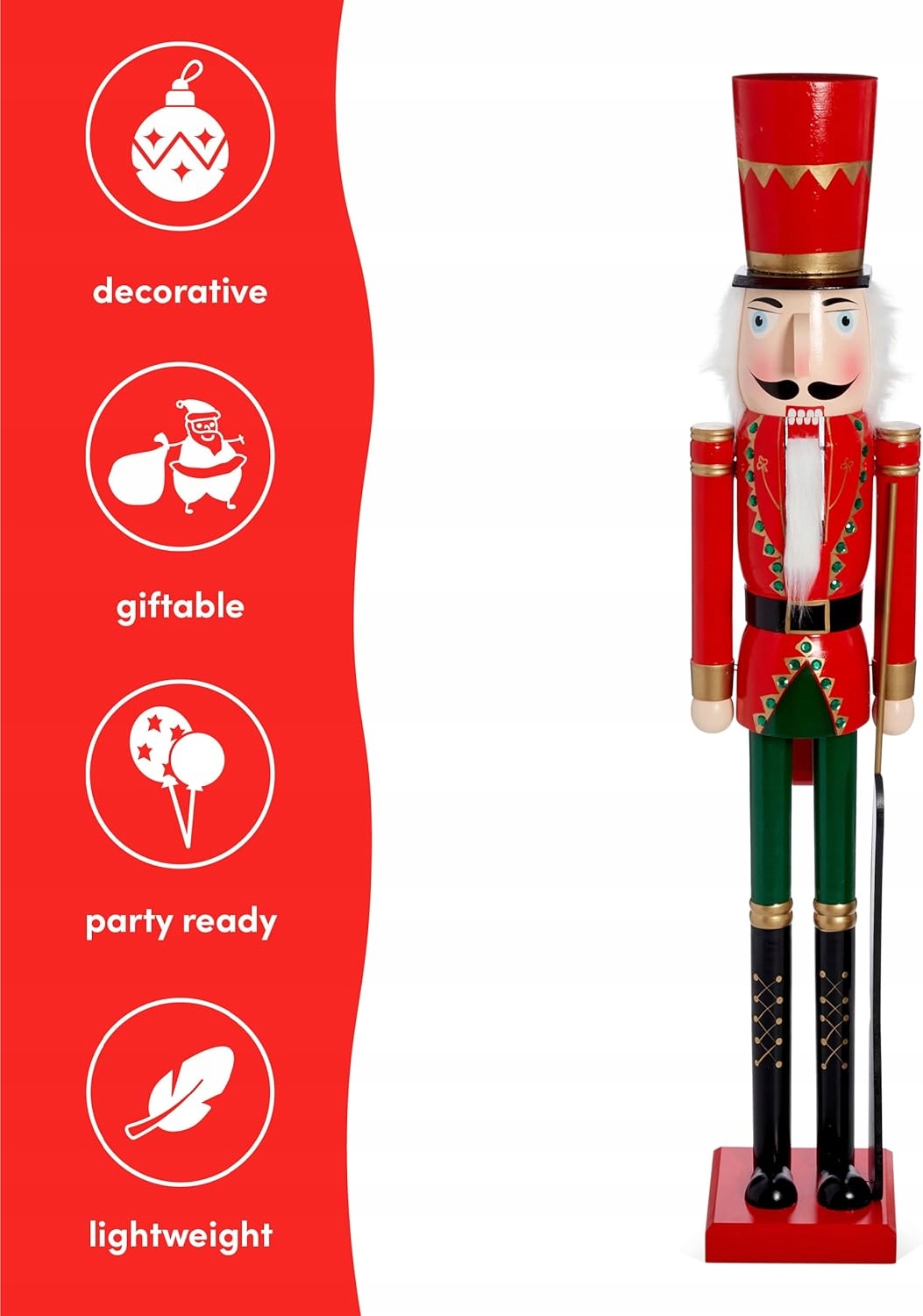 Гігантський дерев’яний Лускунчик (20 x 23 x 120,5 см) - Розміри традиційного різдвяного прикраси ручної роботи