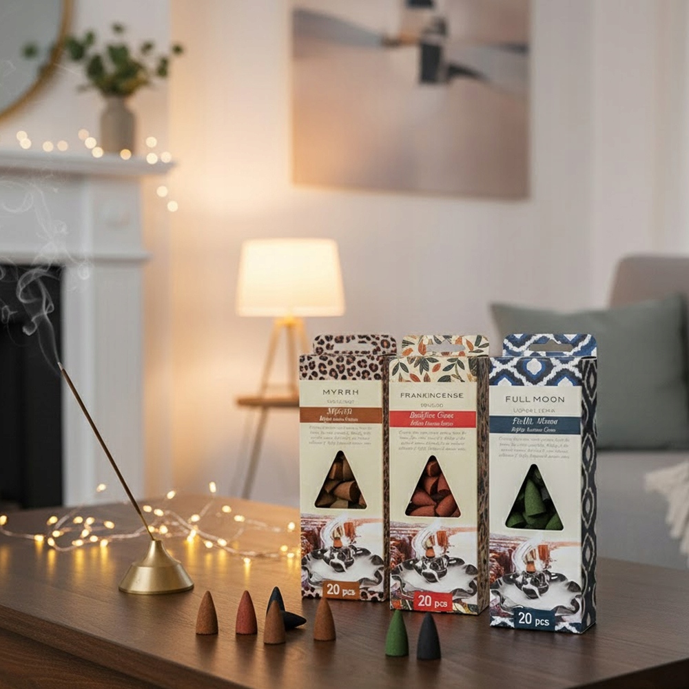 Конічні ароматичні палички виготовлені з натуральних трав, олій і смоли. Східний вигляд такого набору і заспокійливий аромат натуральних інгредієнтів ароматичної палички забезпечать атмосферу ідеального балансу у вашому домі.
