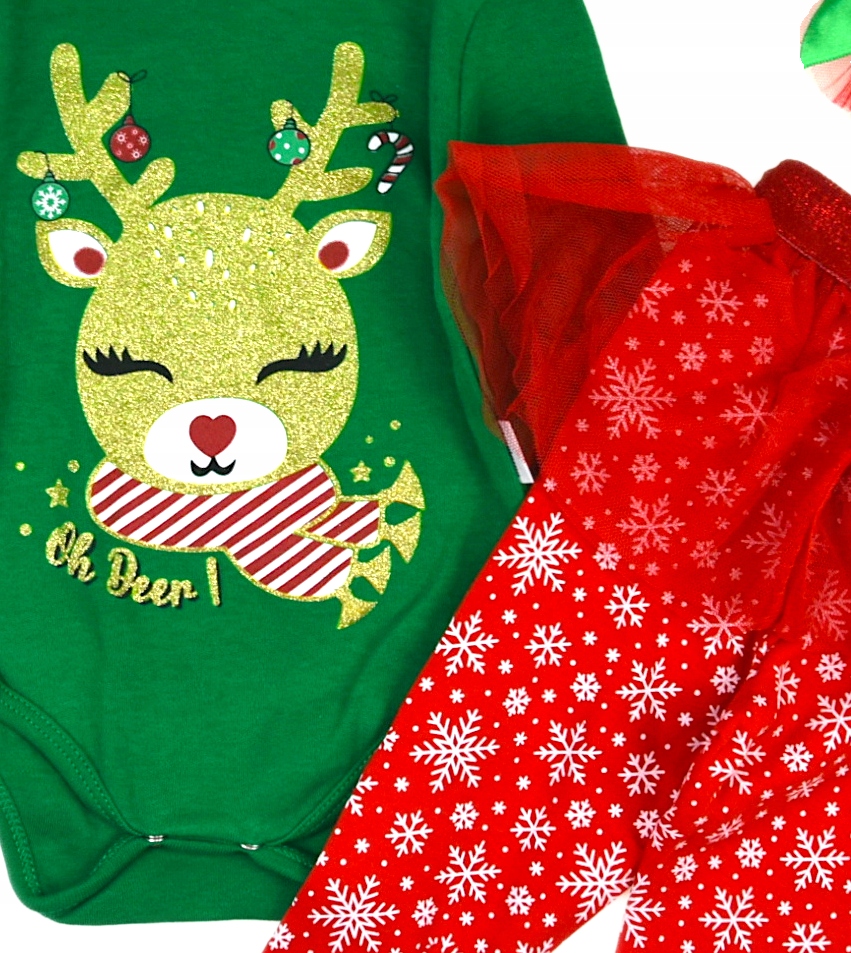РІЗДВЯНИЙ КОМПЛЕКТ З ПОВ'ЯЗКОЮ, БОДІ З ТЮЛЕМ, ОЛЕНЬ 92