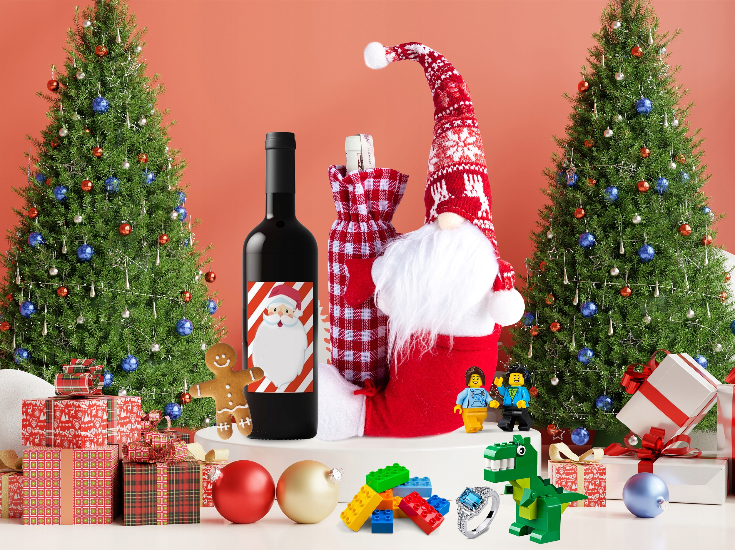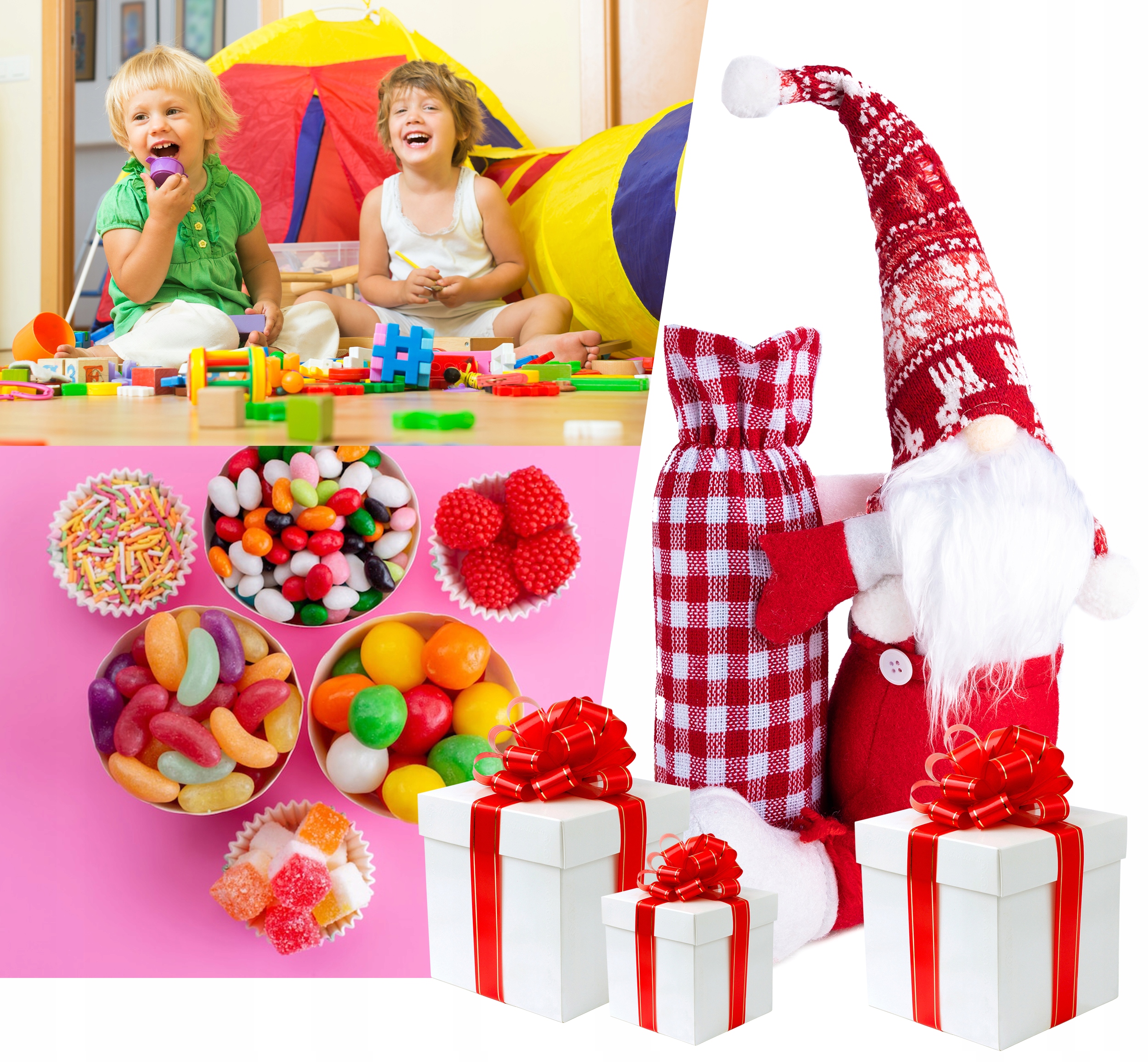 Різдвяний ельф, гном Санта Клаус, гном з подарунковим пакетом